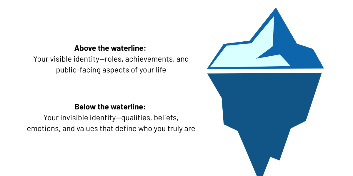 The purpose of this exercise is to separate what you do from who you are. Your visible identity—the part that others see—is important, but it's only the tip of the iceberg. Below the surface lies your invisible identity: the qualities, values, and beliefs that guide your actions, inform your decisions, and shape your character both in and out of sport. By exploring these layers, you can: